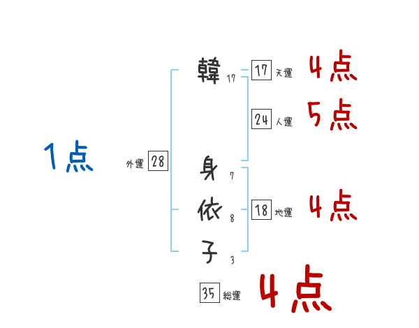 外運![]() | 韓身依子さんの外運は28画の1つ星!家庭環境に注意。スポーツで活躍できる能力があるかも。 生活面を象徴する運勢です。外部から受ける影響力を表し、結婚運、家庭運や職場、環境への順応性を表します。 |