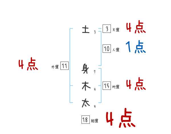 土身木太さんの画数の鑑定結果