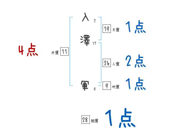 入澤軍さんの画数の鑑定結果
