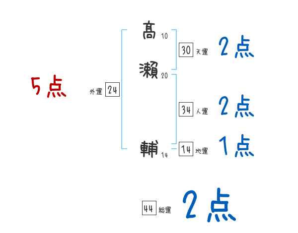 天運![]() | 髙瀨輔さんの天運は30画の2つ星!浮き沈みの激しさに注意しましょう。 家系が持つ宿命的な運勢を表します。祖先から受け継いだ苗字ですので自分の力が及びません。家柄を象徴します。 |
