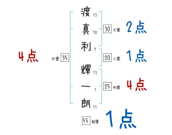 渡真利輝一朗さんの画数の鑑定結果