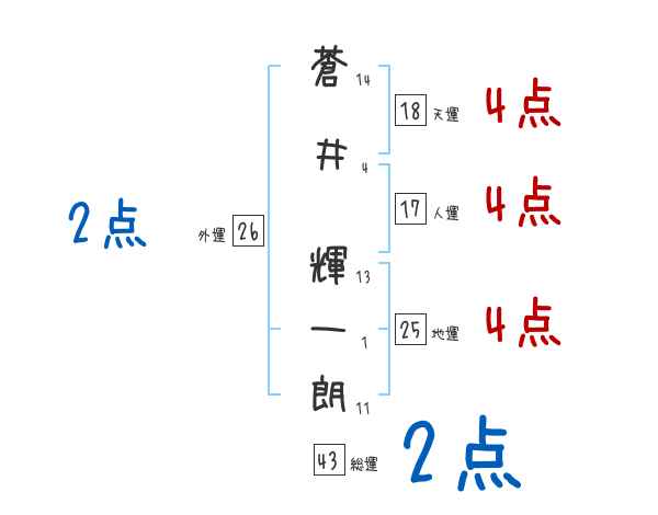蒼井輝一朗さんの画数の鑑定結果