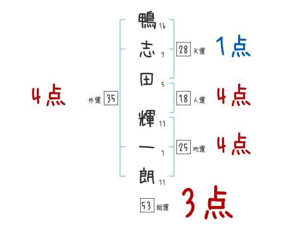 鴨志田輝一朗さんの画数の鑑定結果