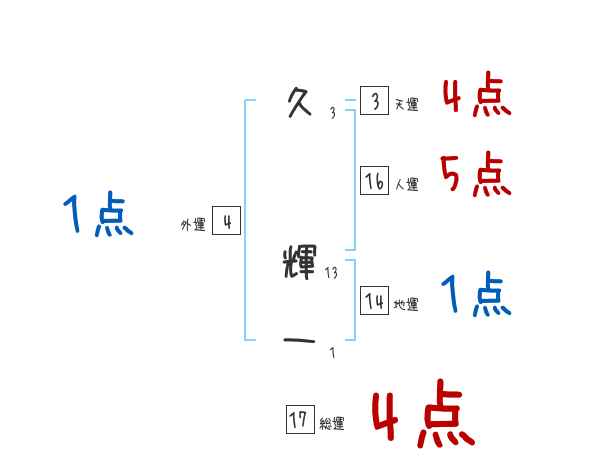 久輝一さんの画数の鑑定結果