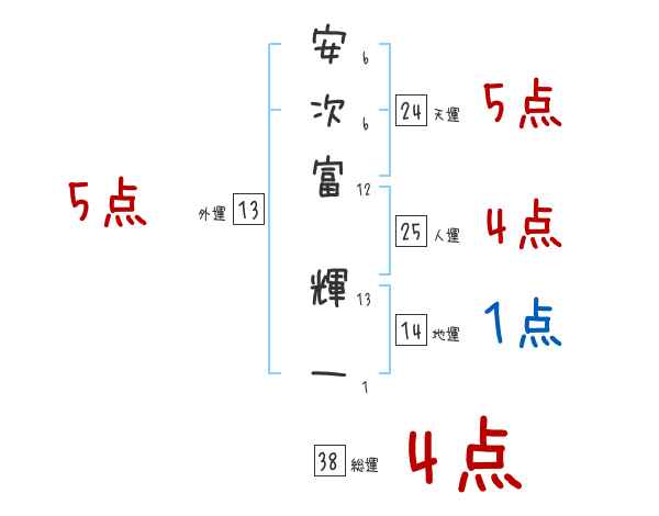 安次富輝一さんの画数の鑑定結果