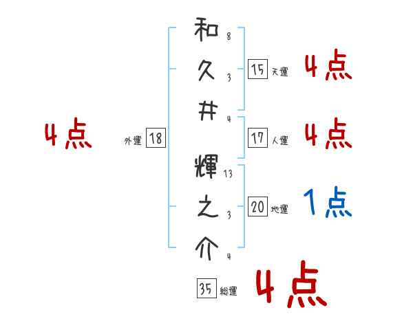 和久井輝之介さんの画数の鑑定結果