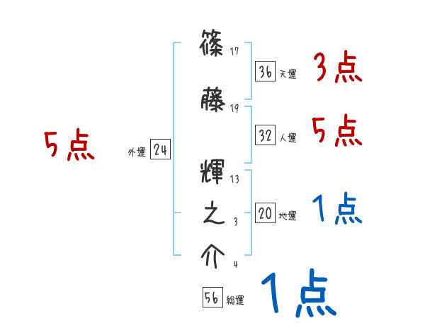 篠藤輝之介さんの画数の鑑定結果