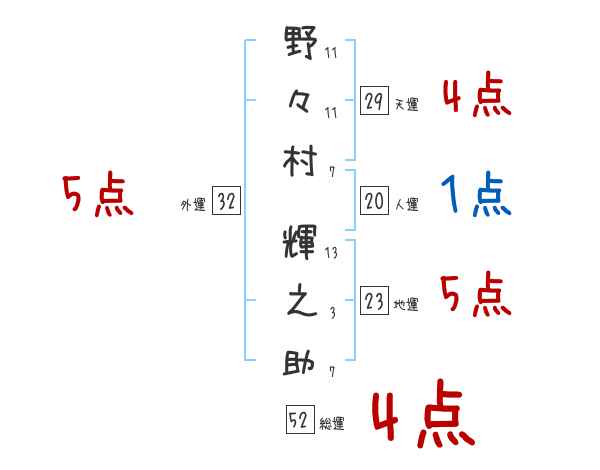 野々村輝之助さんの画数の鑑定結果