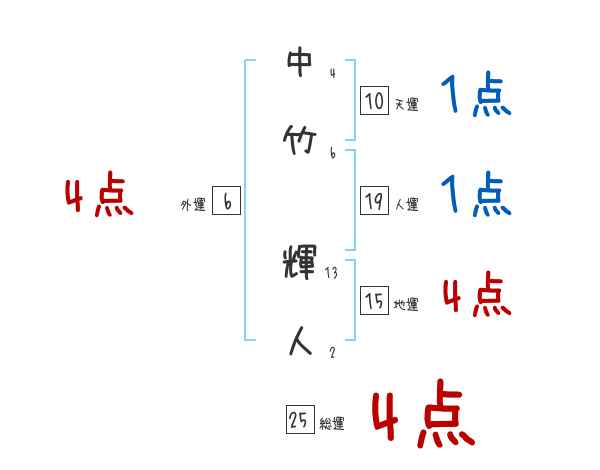 中竹輝人さんの画数の鑑定結果