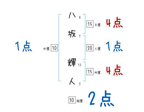 八坂輝人さんの画数の鑑定結果