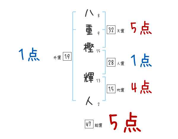 八重樫輝人さんの画数の鑑定結果
