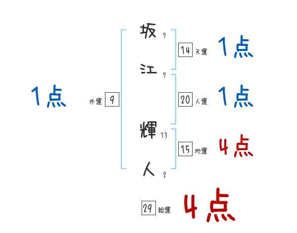 坂江輝人さんの画数の鑑定結果
