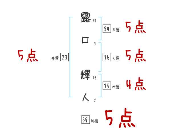 露口輝人さんの画数の鑑定結果
