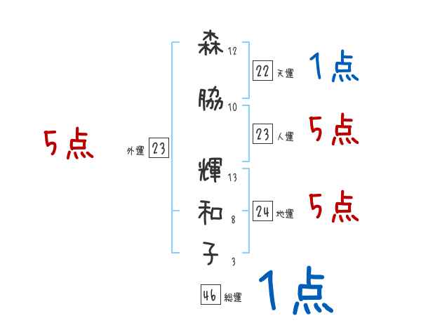 森脇輝和子さんの画数の鑑定結果
