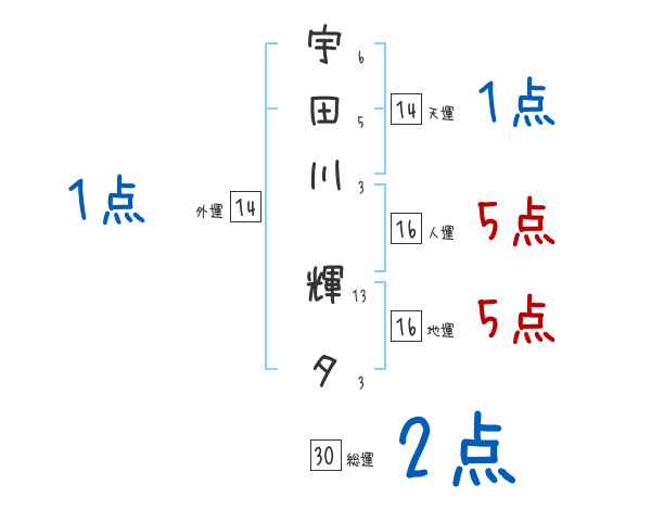 宇田川輝夕さんの画数の鑑定結果