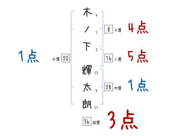総運![]() | 木ノ下輝太朗さんの総運は36画の3つ星!先見性が豊かです。多少神経質で苦労することも。 あなたの人生を表す1番重要な運勢です。生涯を通じて影響する総合運となり、主に50歳以降の晩年期に影響を及ぼします。 |