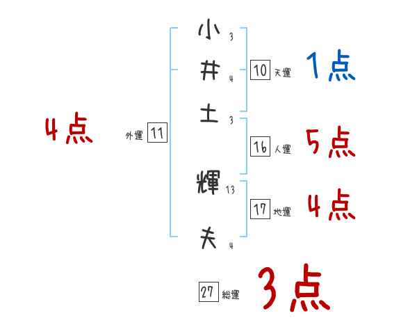 小井土輝夫さんの画数の鑑定結果
