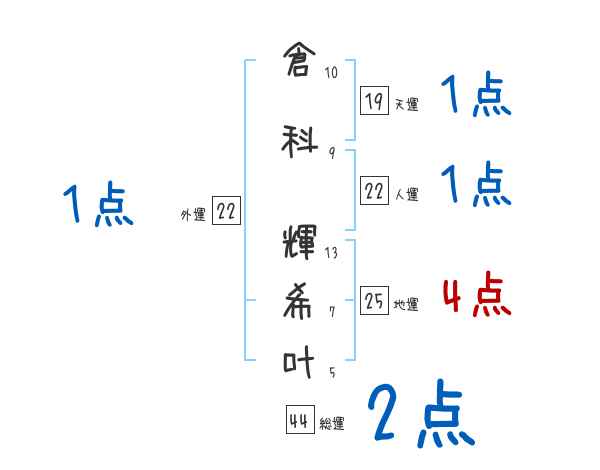 倉科輝希叶さんの画数の鑑定結果