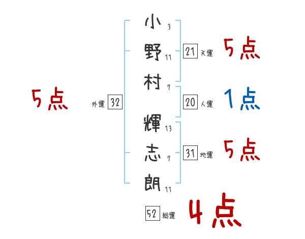 小野村輝志朗さんの画数の鑑定結果