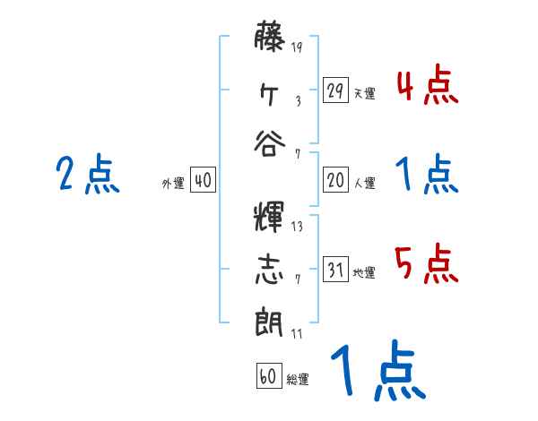 藤ヶ谷輝志朗さんの画数の鑑定結果