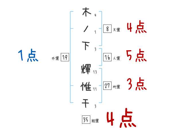 木ノ下輝惟千さんの画数の鑑定結果