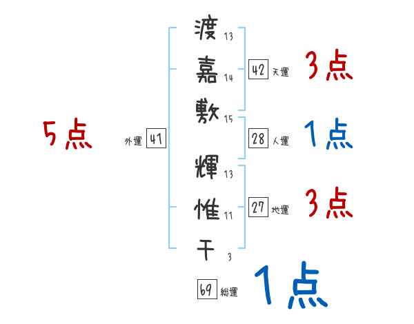 渡嘉敷輝惟千さんの画数の鑑定結果