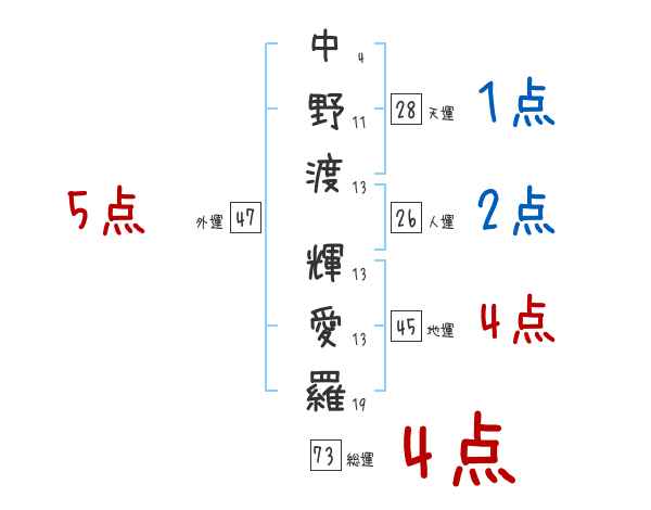 中野渡輝愛羅さんの画数の鑑定結果