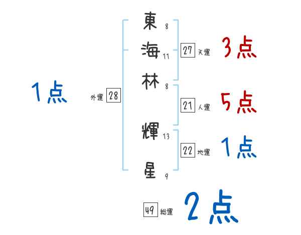 外運![]() | 東海林輝星さんの外運は28画の1つ星!家庭環境に注意。スポーツで活躍できる能力があるかも。 生活面を象徴する運勢です。外部から受ける影響力を表し、結婚運、家庭運や職場、環境への順応性を表します。 |