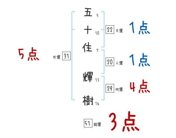 五十住輝樹さんの画数の鑑定結果