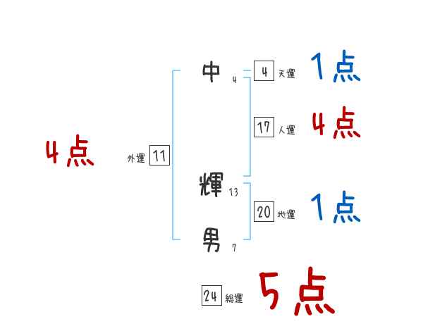 中輝男さんの画数の鑑定結果