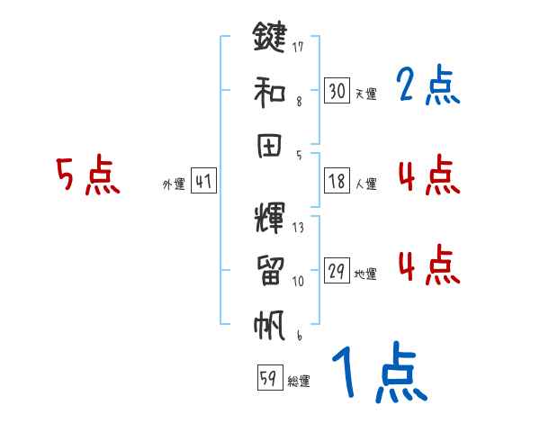 外運![]() | 鍵和田輝留帆さんの外運は41画の5つ星!大志を抱き、目標に向かって実力を発揮し達成する。温和な性格。 生活面を象徴する運勢です。外部から受ける影響力を表し、結婚運、家庭運や職場、環境への順応性を表します。 |
