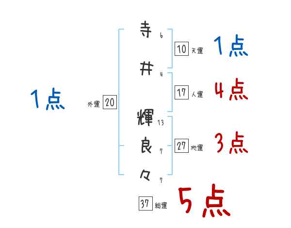 寺井輝良々さんの画数の鑑定結果