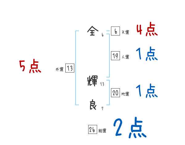 全輝良さんの画数の鑑定結果