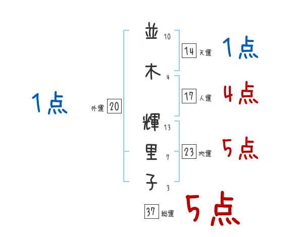 総運![]() | 並木輝里子さんの総運は37画の5つ星!努力家で順応性に優れる。現実的な考え方ができ忠実に物事をこなす。 あなたの人生を表す1番重要な運勢です。生涯を通じて影響する総合運となり、主に50歳以降の晩年期に影響を及ぼします。 |