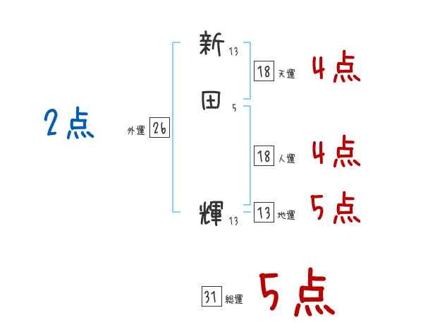 新田輝さんの画数の鑑定結果