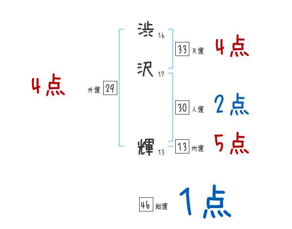 渋沢輝さんの画数の鑑定結果