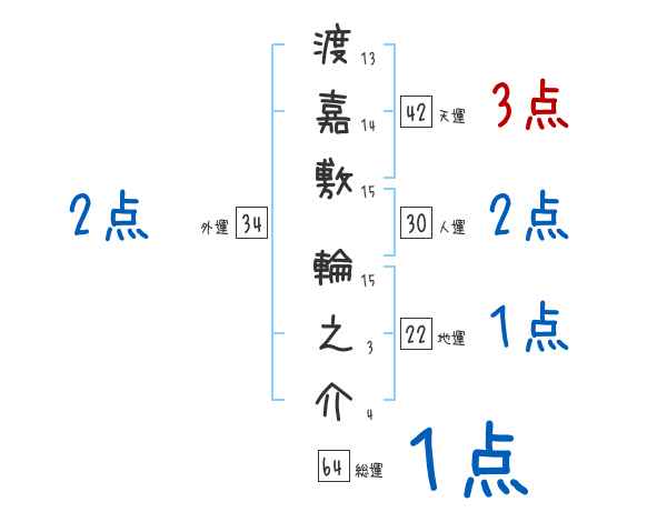 渡嘉敷輪之介さんの画数の鑑定結果