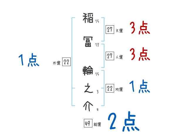 稲冨輪之介さんの画数の鑑定結果