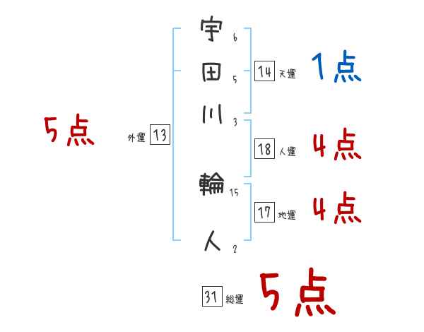 宇田川輪人さんの画数の鑑定結果