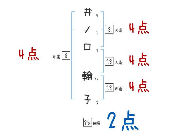 総運![]() | 井ノ口輪子さんの総運は26画の2つ星!波瀾万丈かも。信頼できる人を大事にしましょう。 あなたの人生を表す1番重要な運勢です。生涯を通じて影響する総合運となり、主に50歳以降の晩年期に影響を及ぼします。 |