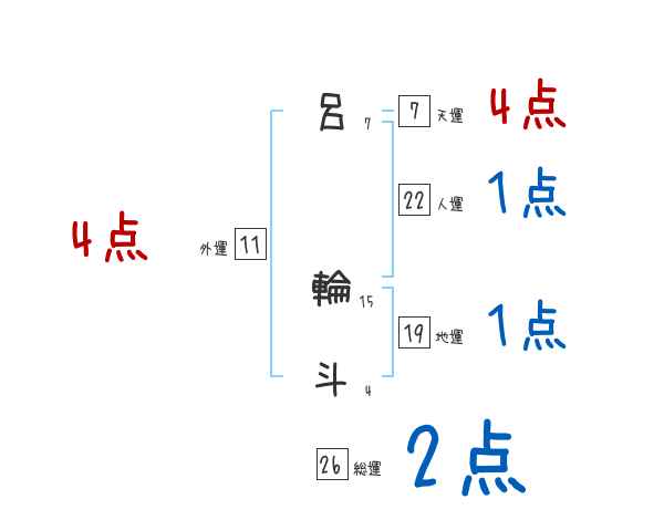 天運![]() | 呂輪斗さんの天運は7画の4つ星!強い意志や信念を持ち独立心が強い。自立する。 家系が持つ宿命的な運勢を表します。祖先から受け継いだ苗字ですので自分の力が及びません。家柄を象徴します。 |