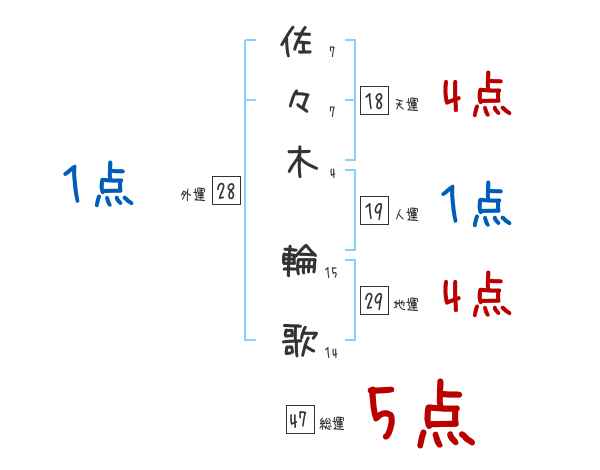総運![]() | 佐々木輪歌さんの総運は47画の5つ星!実力が開花し発展する円満な人生。財に恵まれる。 あなたの人生を表す1番重要な運勢です。生涯を通じて影響する総合運となり、主に50歳以降の晩年期に影響を及ぼします。 |