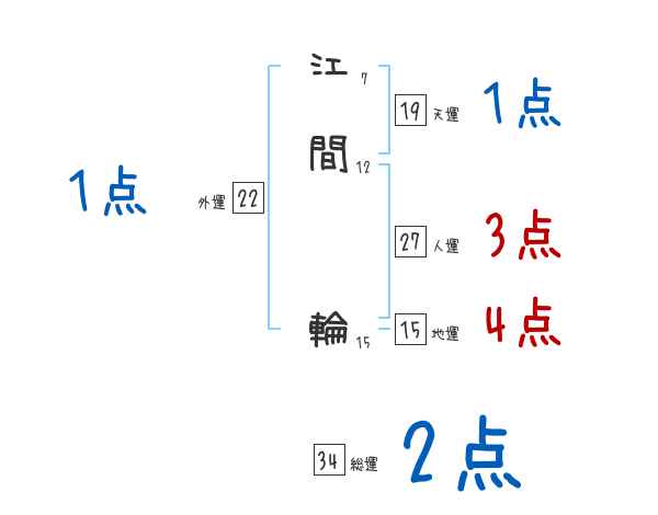 江間輪さんの画数の鑑定結果