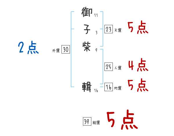 御子柴輯さんの画数の鑑定結果
