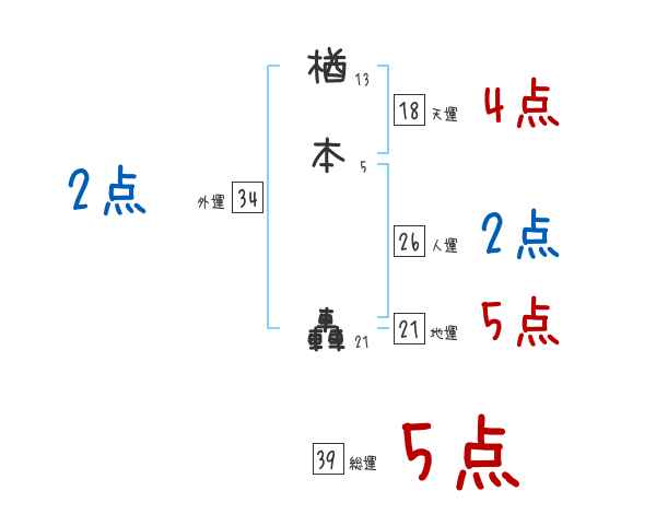 総運![]() | 楢本轟さんの総運は39画の5つ星!社交性に優れ人望が厚い。人の上に立ち成功する。 あなたの人生を表す1番重要な運勢です。生涯を通じて影響する総合運となり、主に50歳以降の晩年期に影響を及ぼします。 |