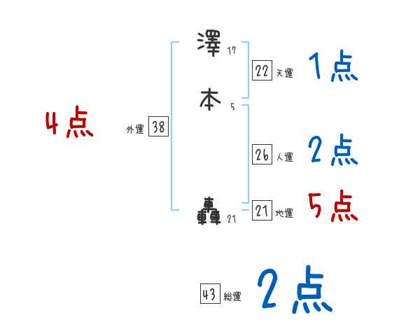 澤本轟さんの画数の鑑定結果