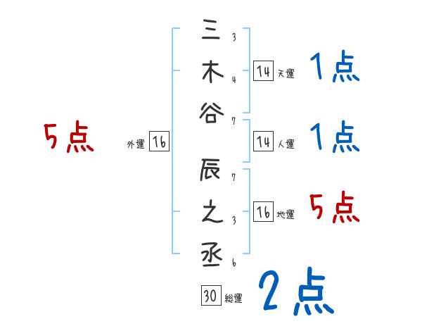 外運![]() | 三木谷辰之丞さんの外運は16画の5つ星!人望が厚く大きく発展する。逆転成功が見える。 生活面を象徴する運勢です。外部から受ける影響力を表し、結婚運、家庭運や職場、環境への順応性を表します。 |