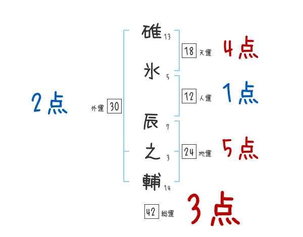 天運![]() | 碓氷辰之輔さんの天運は18画の4つ星!情熱的で剛気。忍耐力があり信頼される。 家系が持つ宿命的な運勢を表します。祖先から受け継いだ苗字ですので自分の力が及びません。家柄を象徴します。 |