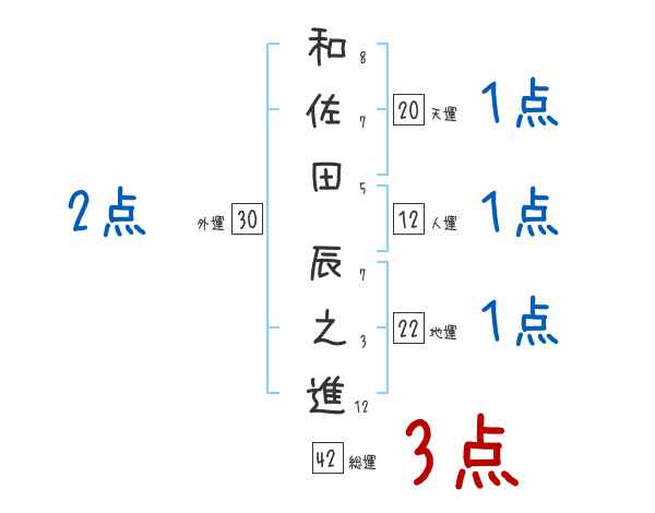 総運![]() | 和佐田辰之進さんの総運は42画の3つ星!病気に注意。多芸であるが消極的でおとなしい。 あなたの人生を表す1番重要な運勢です。生涯を通じて影響する総合運となり、主に50歳以降の晩年期に影響を及ぼします。 |