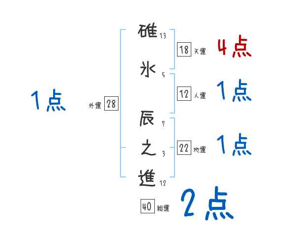 外運![]() | 碓氷辰之進さんの外運は28画の1つ星!家庭環境に注意。スポーツで活躍できる能力があるかも。 生活面を象徴する運勢です。外部から受ける影響力を表し、結婚運、家庭運や職場、環境への順応性を表します。 |